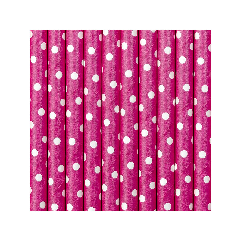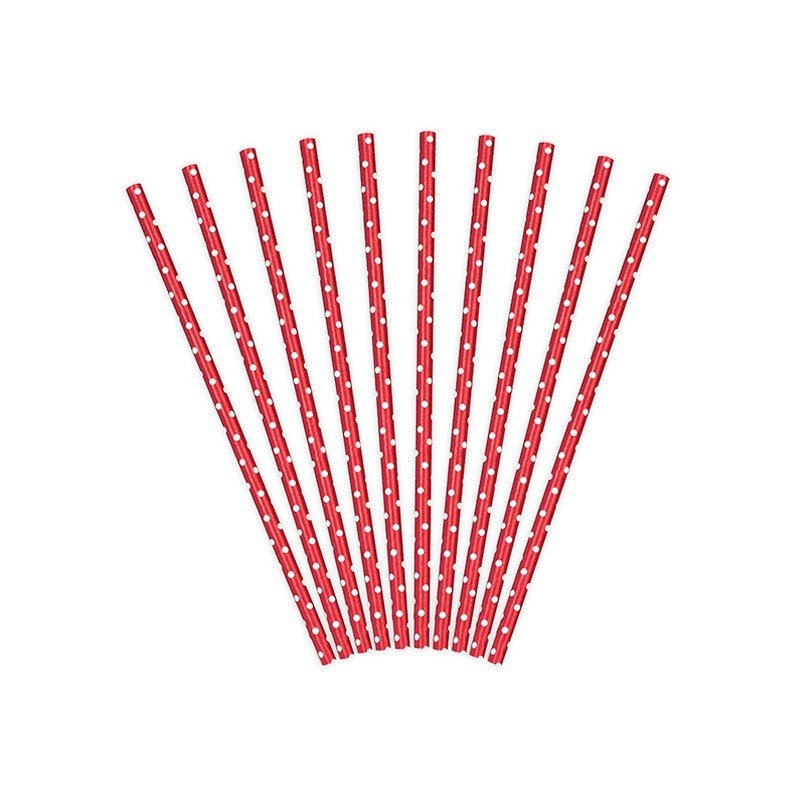Pack contenant 10 pailles en papier à pois blancs de 19,5 cm de haut disponibles en plusieurs couleurs.