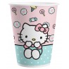 Pack de 8 gobelets en carton bleu et rose au motif Hello Kitty avec une contenance de 200ml.