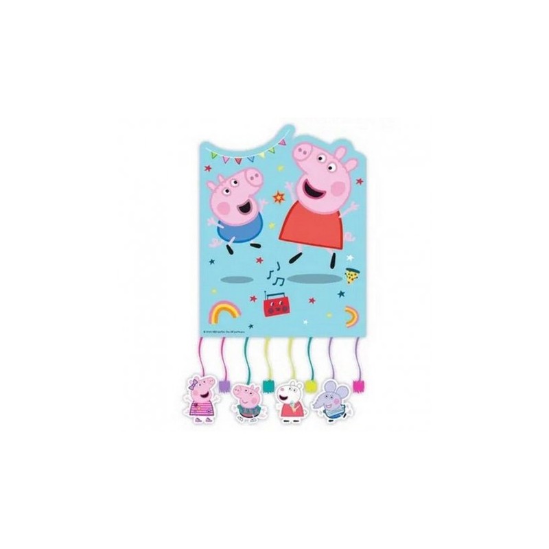 Une pinata en papier et carton à l'effigie de Peppa Pig de dimension 20 x 30 cm. Vendue non remplie.