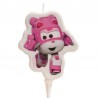 Une bougie en cire Super Wings rose avec la forme de Dizzy d'une taille de 7,5 cm avec support.
