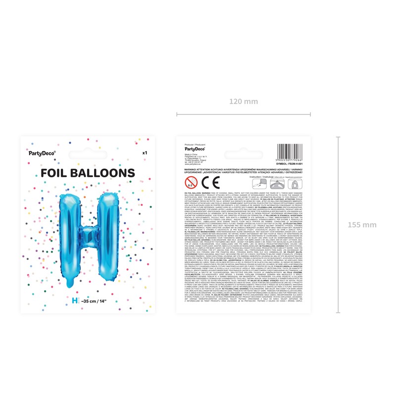 Ballon lettre en forme de H de 40 cm de hauteur en aluminium. Plusieurs couleurs disponibles.