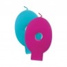 Bougie d'anniversaire en cire en forme de chiffre 0 de 6,5 cm de haut. Disponible en rose fuschia et en bleu.