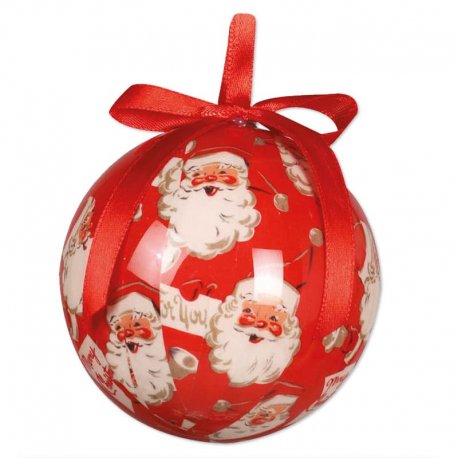 Un pack de 6 boules de Noël en plastique avec des motifs de Père Noël rouges et blancs de 6 cm de diamètre.