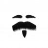 Pack contenant une fausse moustache de 13 cm, un bouc de 4 cm et des sourcils de 5,5 cm en feutre noir adhésif.