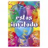 Pack contenant 8 invitations en carton décorées de ballons ainsi que de confettis de toutes les couleurs.