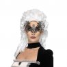 Un masque loup en forme de toile d'araignée papillon en plastique effet métallique noir avec strass de 20 x 15 cm.