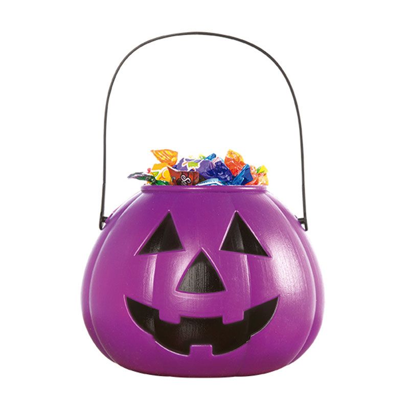 La citrouille violette mesure 18 cm ce qui fait que vous aurez assez de place pour ranger tous vos bonbons même si vous avez acheté 12 sachets. Achetez-la maintenant et vous les recevrez dans un délai de seulement 2 à 3 jours.