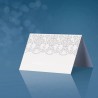 Pack contenant 10 marque-places en papier cartonné blanc avec des motifs damas argent de 8 x 5 cm.
