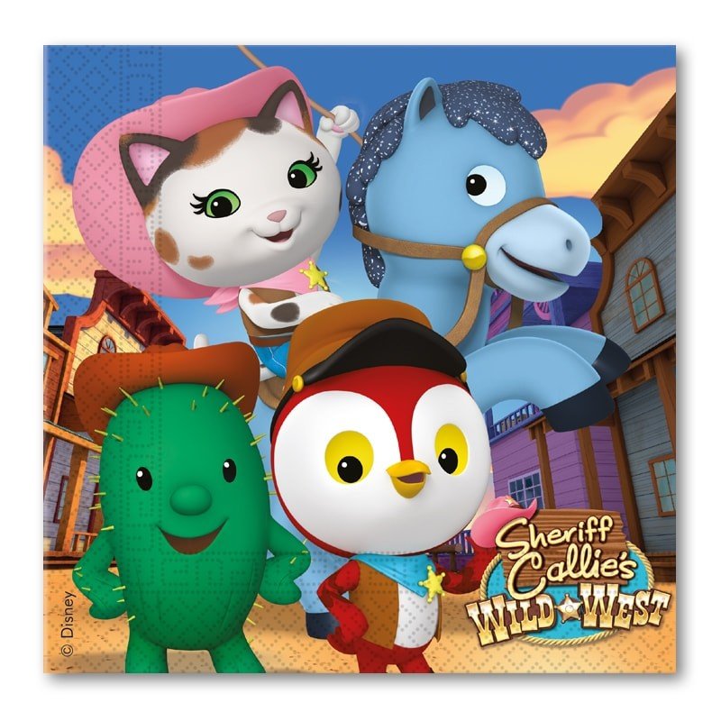 Pack contenant 20 serviettes en papier à l'effigie des personnages du dessin animé Callie au Far West de 33 x 33cm.