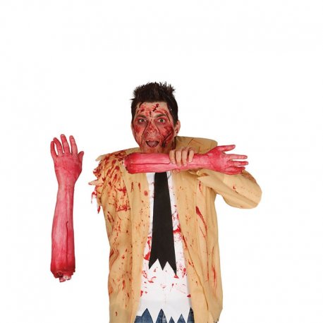 Un bras humain démembré ensanglanté de 44 cm de long en plastique terrifiant pour halloween.