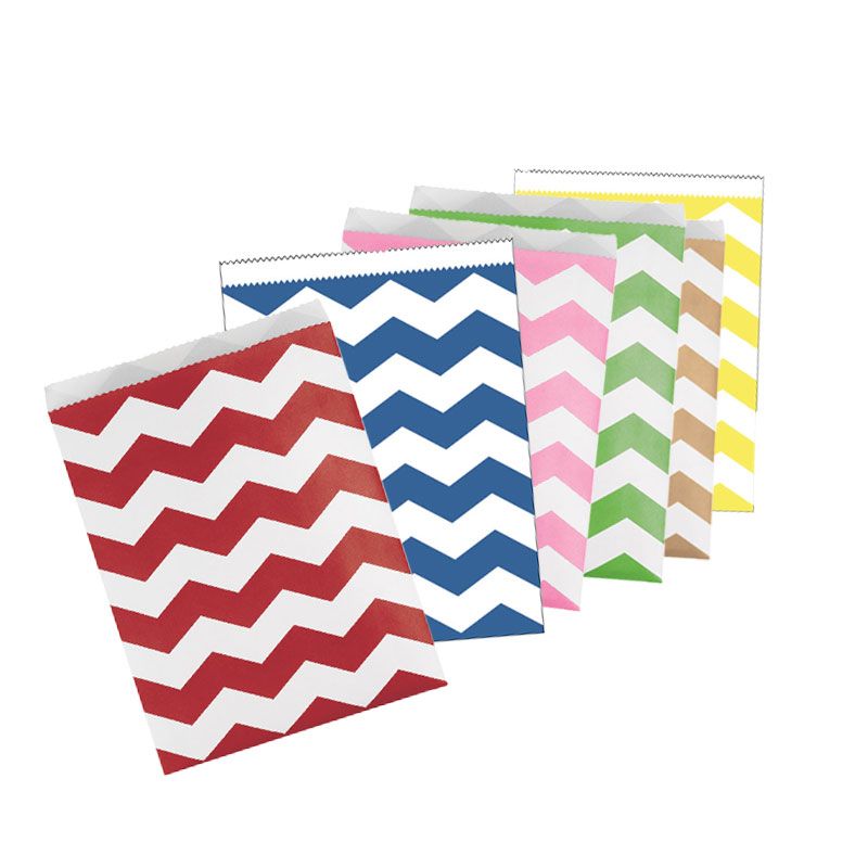 Pack de 15 sachets à bonbons en papier colorés à motifs chevron de 22 x 16,5 cm, disponibles dans plusieurs couleurs.