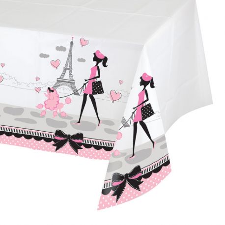 Une Nappe sur le thème Paris avec une image de la tour eiffel, de dimension 2,59 mètres x 1,37 mètres.