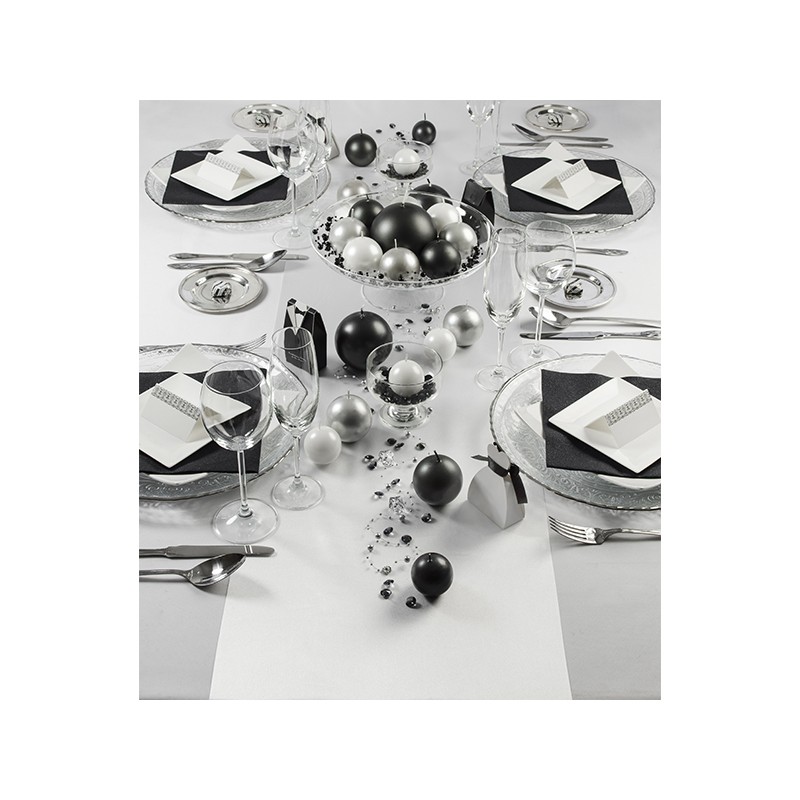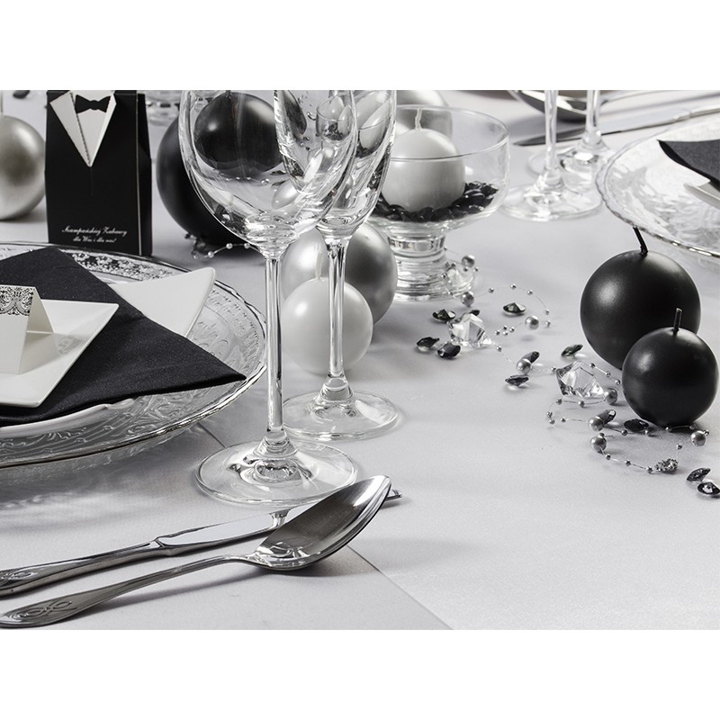 Un chemin de table en tissu satin unie 36 cm x 9 m disponible en plusieurs couleurs vives.
